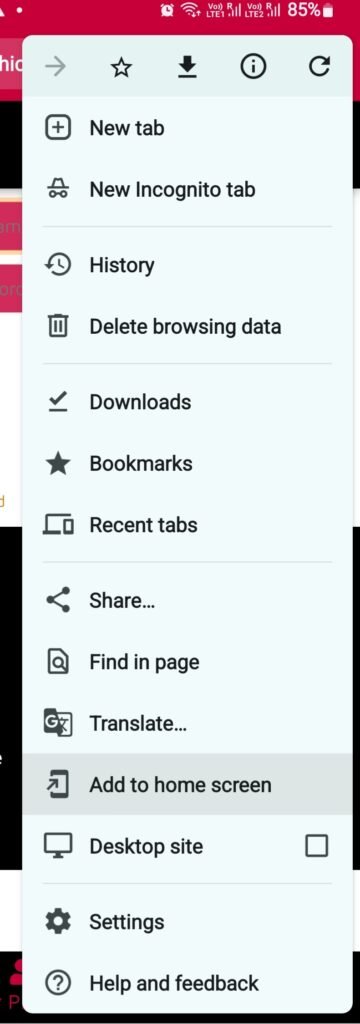 Click on Browser menu and Click ‘Install App’ or ‘Add to Home’.